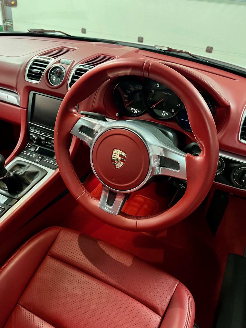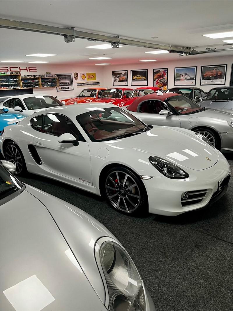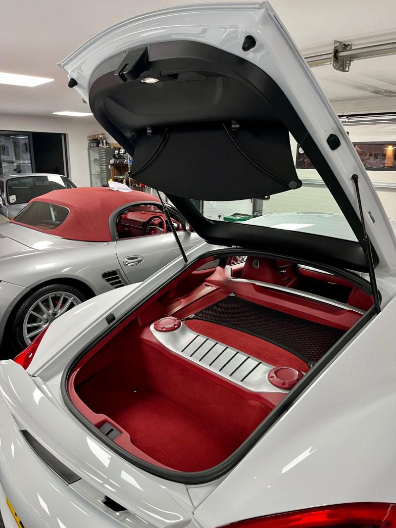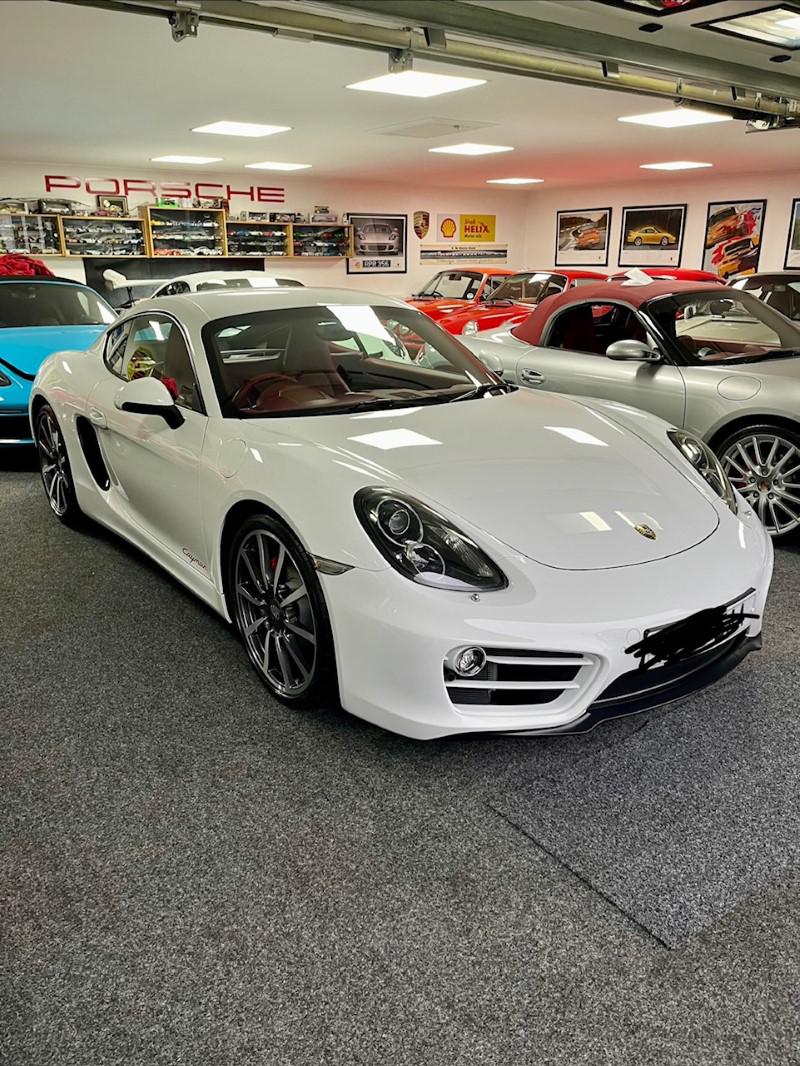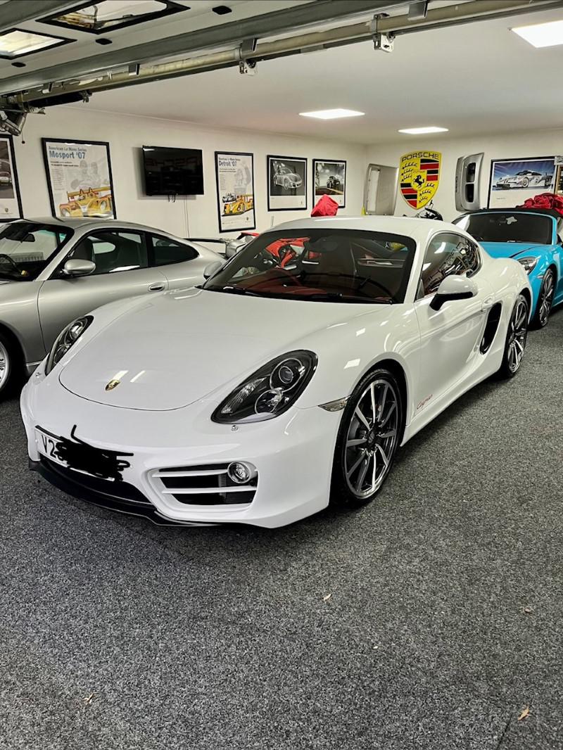 Porsche Cayman 2.7 manual 6 speed finished in Carrara White with full red leather including dash and door cards, mega spec includes front and rear park assist, sport chrono, sport/sport plus exhaust, 19" alloys, red calipers, sat nav, stunning car in looks and condition,